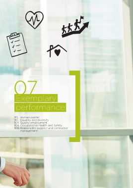 07 Exemplary performance 93. Human capital 96. Equality and diversity 101. Quality employment 104. Occupational Health and Safety 109. Responsible supplier and contractor management
