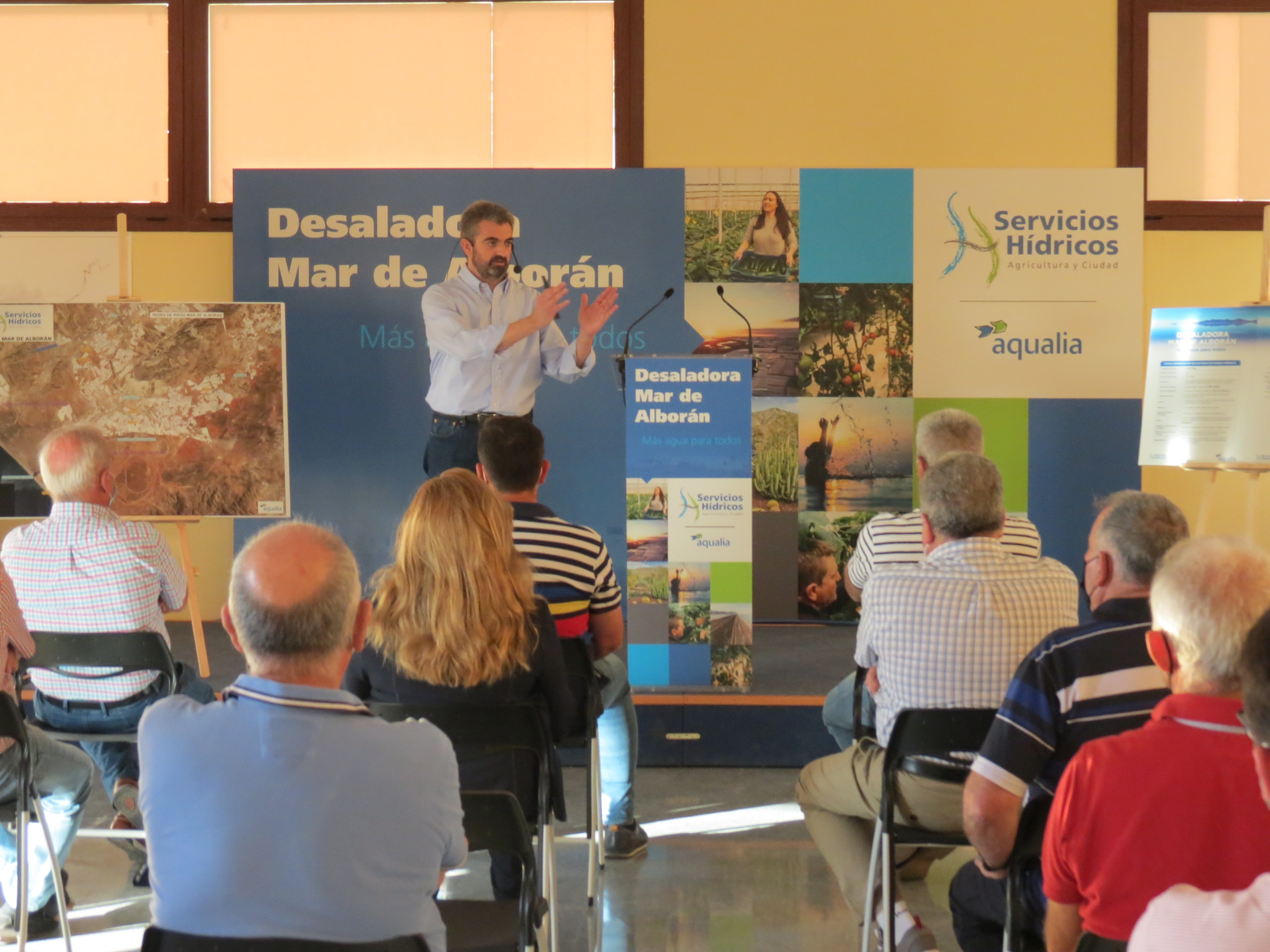 Jose Colomina, director de la delegación Almería-Jaén de Aqualia, se ha dirigido a los regantes para transmitirles que son ellos los verdaderos protagonistas de la recuperación de los acuíferos, para lo que van a contar con Servicios Hídricos como la llave para lograrlo a través de la desaladora Mar de Alborán. “Por el bien de nuestro entorno, y si queremos tener garantizado el futuro, es necesario cambiar el modelo actual” – ha señalado.