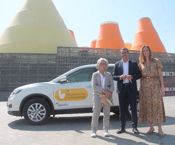 On the other hand, because of the collaboration between Aqualia and Acción Cultural Española, the Spanish Pavilion has a car that has been used as an official vehicle inside the venue. The vehicle is equivalent to those that Aqualia uses daily in its operations, and which run on the biogas generated in the wastewater treatment plants from wastewater. The use of this fuel generates 80% less CO2 emissions than a petrol-powered vehicle.