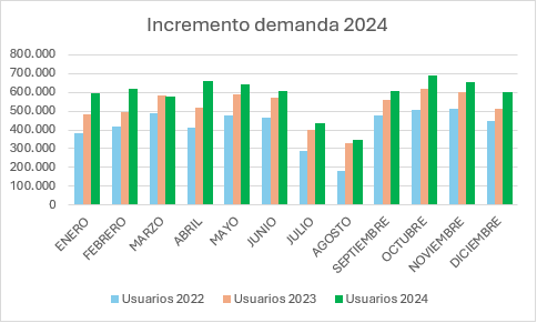 The most significant growth occurred between 2022 and 2023, when the number of users increased by 1,216,799 people, a growth of 24.06%. A rate that did not stop in 2024, closing with 739,972 more travelers than the previous year.