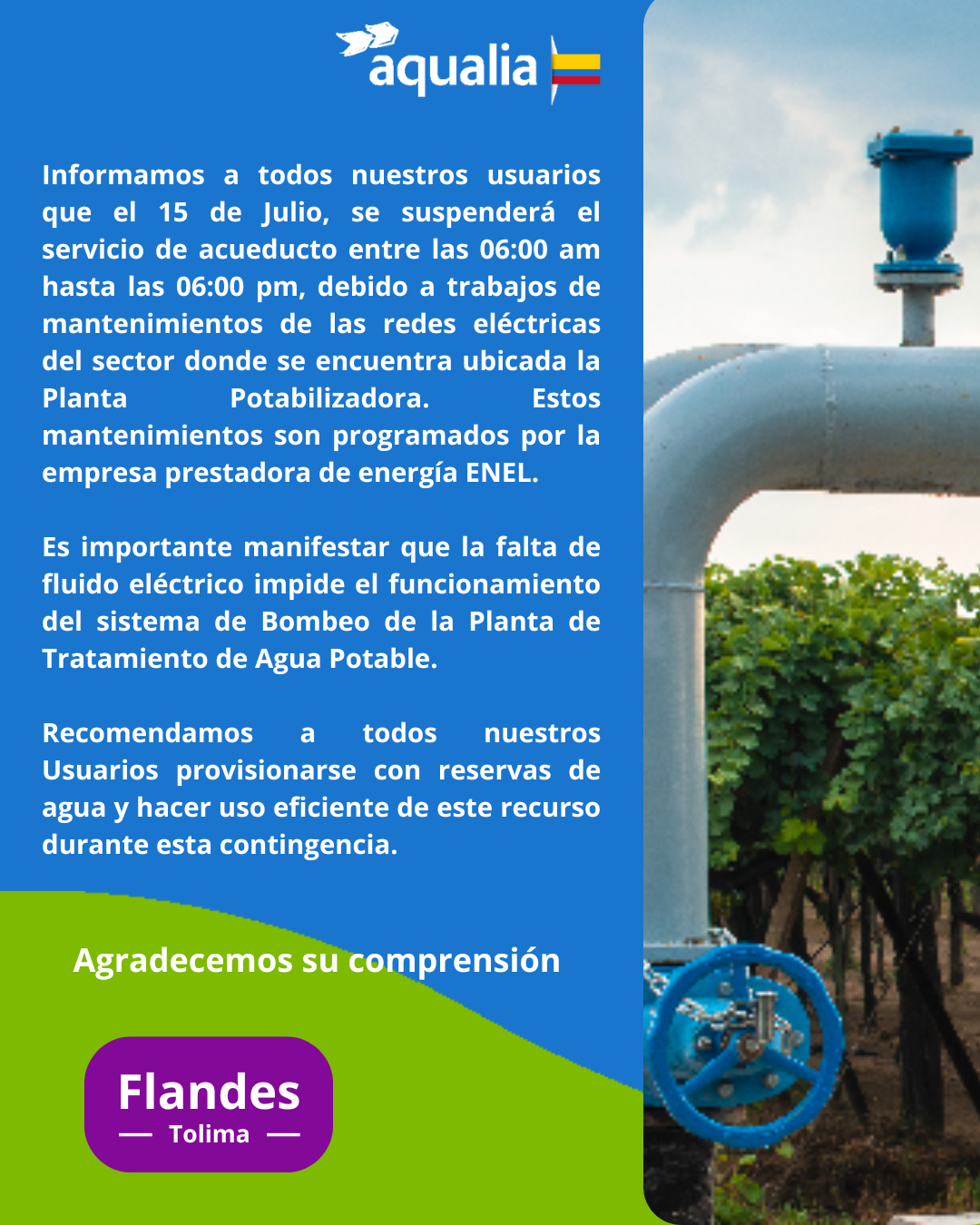 Suspensión temporal del servicio por mantenimientos en la red de energía