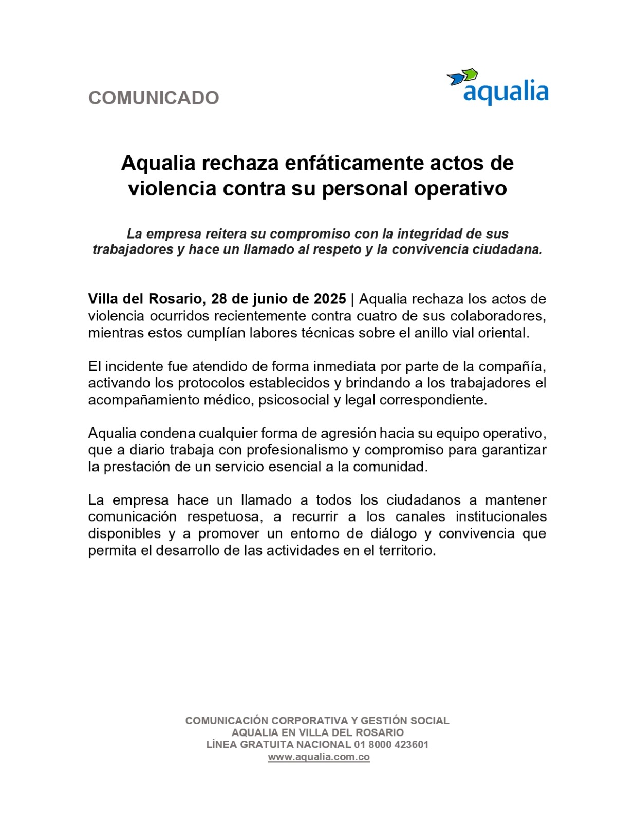 Aguas de la Península informa que hoy se completan cinco días sin servicio de agua en Maicao, debido al cierre de la Planta de Tratamiento de Agua Potable (PTAP) El Jordán, ocasionado por bloqueos en la vía de acceso y el cierre de válvulas por parte de integrantes de la comunidad de Carraipía.
