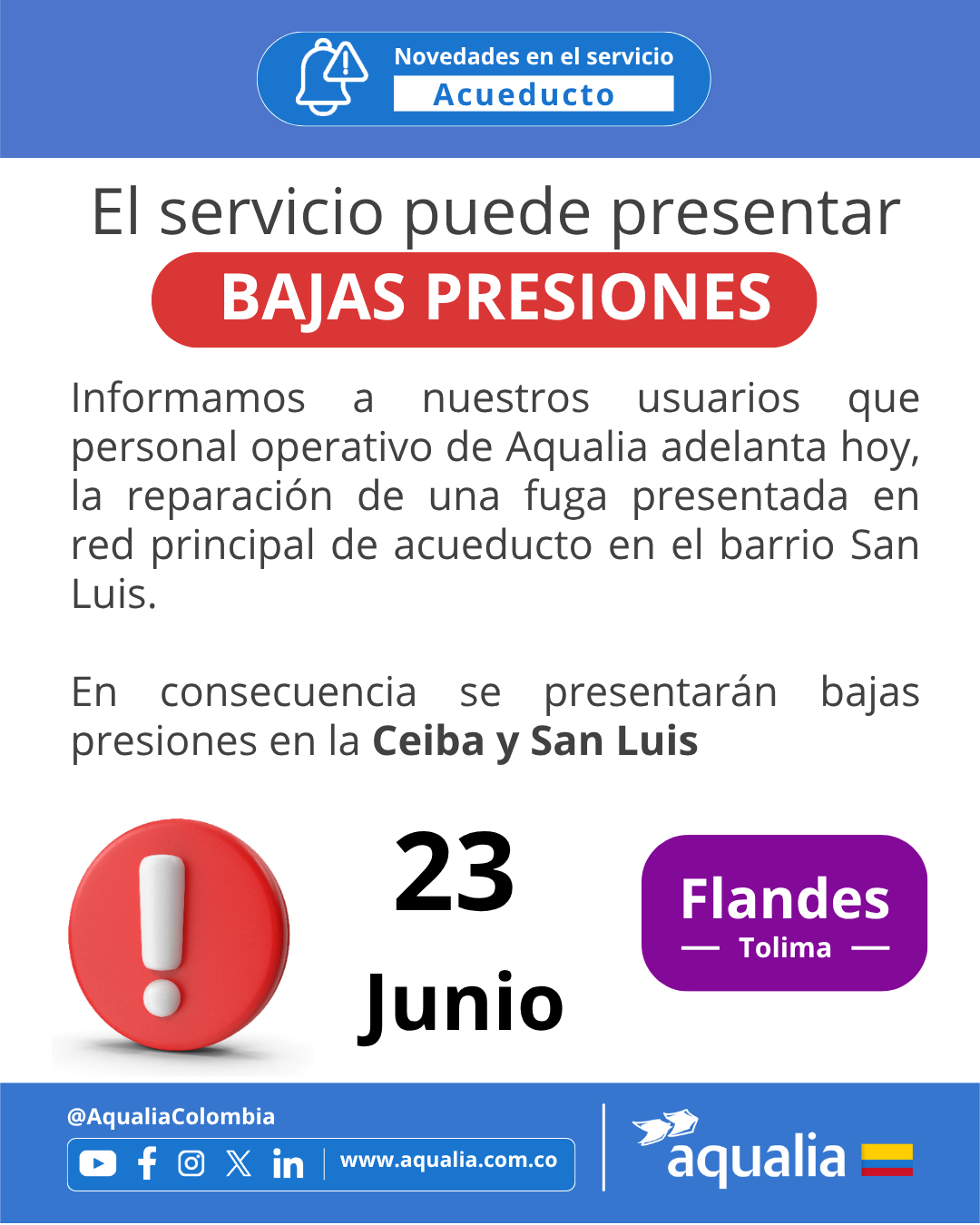 Bajas presiones por fuga en el barrio San Luis de Flandes