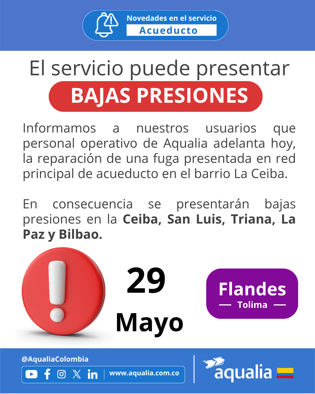 Bajas presiones por fuga presentada en el barrio la Ceiba del municipio de Flandes