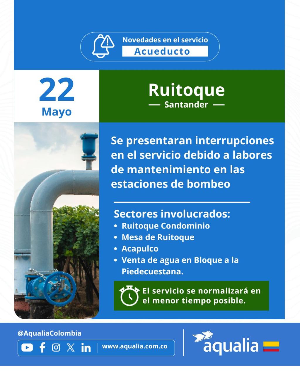 Se presentaran interrupciones en el servicio debido a labores de mantenimiento en las estaciones de bombeo
