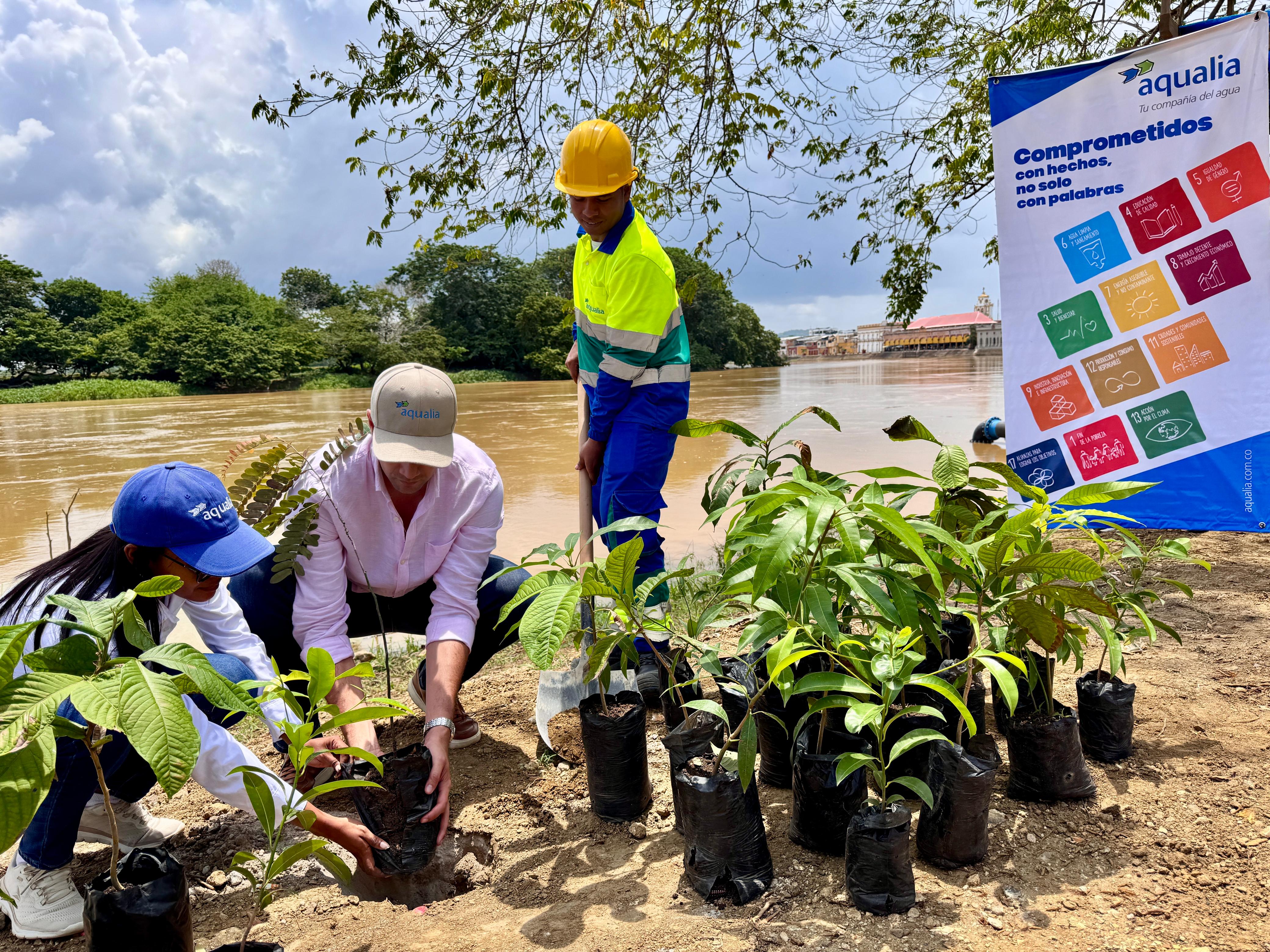 Aqualia se une al Día del Árbol con siembra de especies nativas en la ribera del Río Sinú