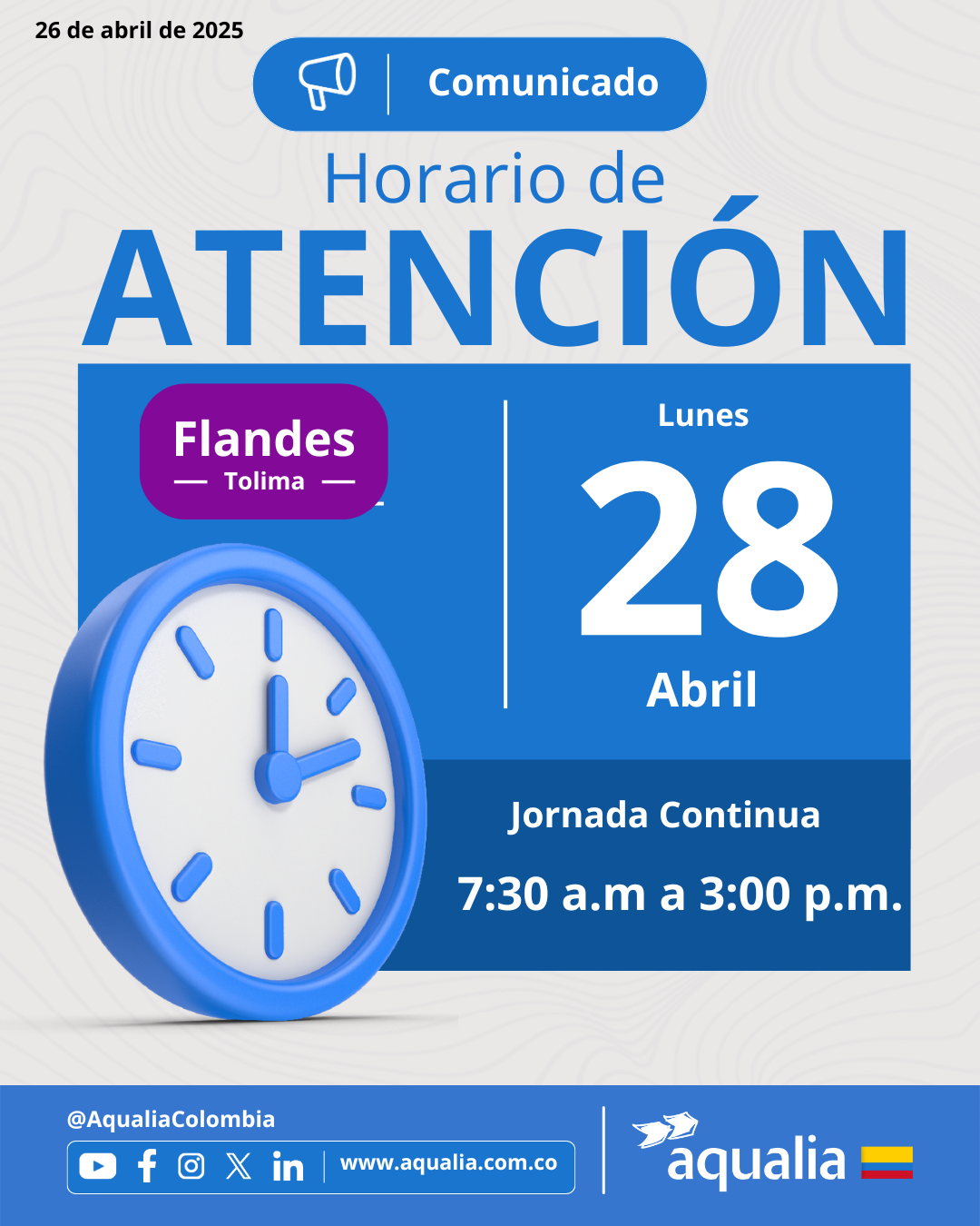 Horario de atención al usuario para este 28 de abril de 2025 en Flandes