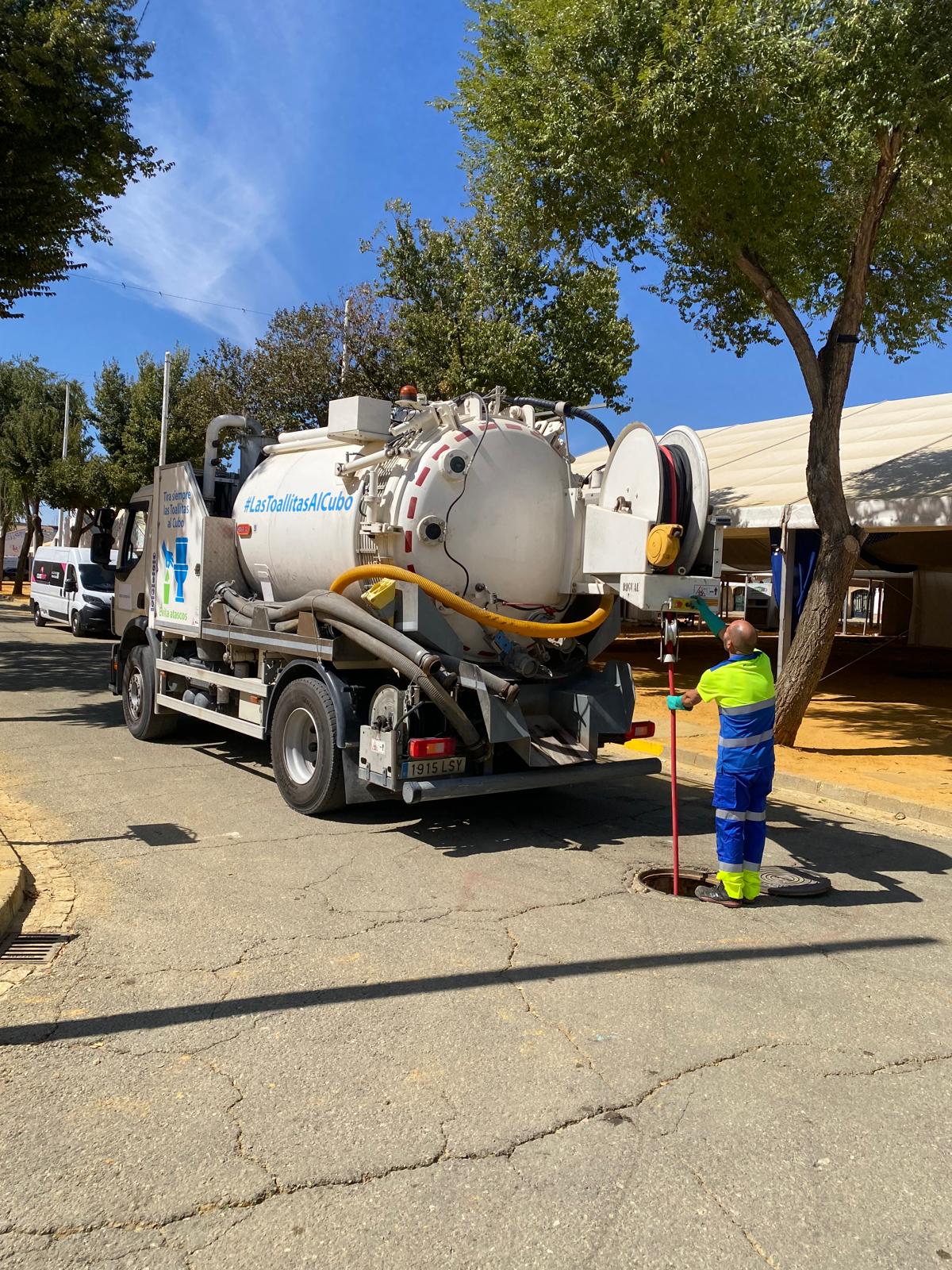 Aqua Campiña puso a punto varios días antes el recinto ferial con una limpieza global de los imbornales y acometidas para evitar atascos en el sistema de drenaje durante las fiestas, extrayendo 325 kg de residuos