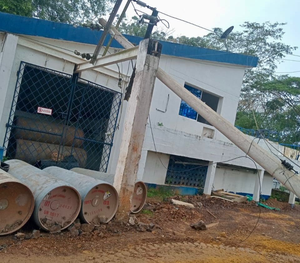Maquinaria derriba poste y afecta la operación del acueducto de Planeta Rica